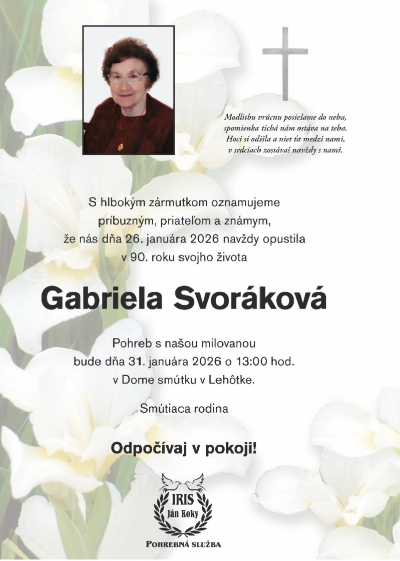 že dňa 26.januára 2026 nás navždy opustila vo veku 90 rokov naša rodáčka , spoluobčianka
